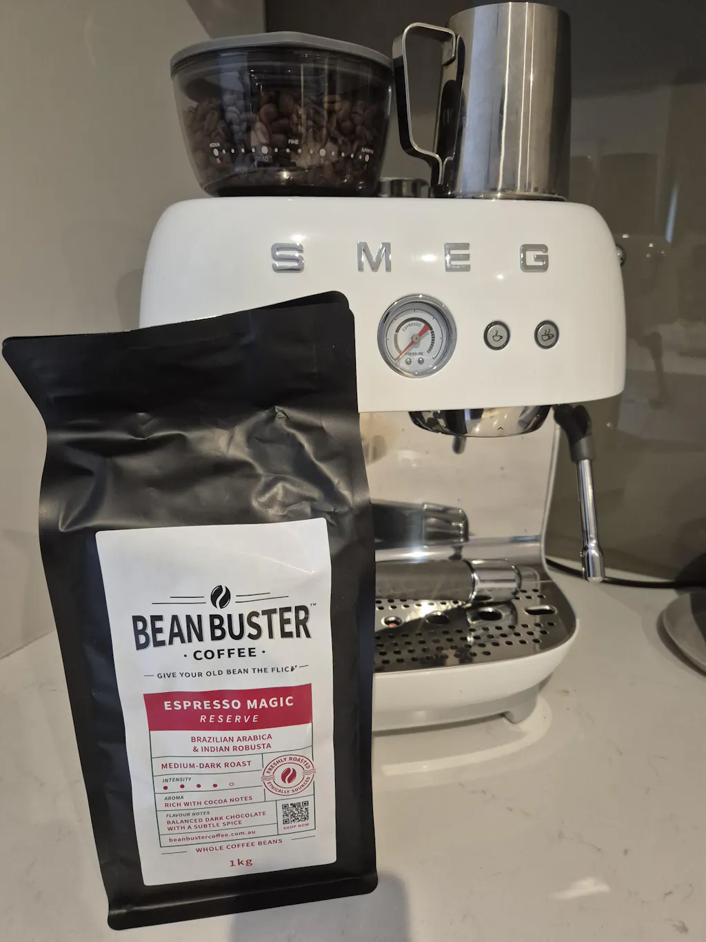 Having tried the latte and espresso blends i can say hands down this is the best coffee my Smeg blender machine has had at home.Bold, rich, smooth, just what I want to taste and enjoy from coffee beans.Ive applied a trial and test phase for my machine at home over many months on many brands,blends and varieties to have now come to my "chosen" brand and supplier, this takes 1st place.Well done to the team at Bean Buster!